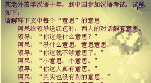 但是我们的汉字就不一样了,偏旁部首那可都是有名字的,而且笔画结构和顺序也是多种多样。一个汉字就有很多的写法,而且每个字代表的都是自己的意思,在与别的词组在一起就变成了别的意思。小编觉得光这些,也能把那些老外给搞晕了呢!不光是用一个字有好几个读音,而且写法和意思也是好几个,要不怎么说这是我们老祖宗传了几千年的产物,可不是那些老外随随便便就能理解的。